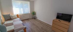This apartment is comprised of 2 bedrooms, a kitchen and 1 bathroom with a shower and a hairdryer. Guests can make meals in the kitchen that comes with a stovetop, a refrigerator, kitchenware and an oven. Featuring a balcony with a quiet street view, this apartment also offers a tea and coffee maker and a flat-screen TV with satellite channels. The unit offers 2 beds.