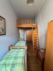 Diese Ferienwohnung verfügt über 1 großes Schlafzimmer mit Doppelbett und 1 Schlafzimmer mit 2 Einzelbetten und zusätzlich einem Doppelhochbett, das über eine Holzleiter erreichbar ist. In diesem Doppelzimmer kann auf Anfrage ein Babybett aufgestellt werden.