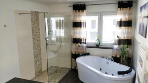 Los huéspedes del apartamento FeWo - bei Tati 95qm pueden disfrutar de la bañera de hidromasaje. Hay terraza y zona de juegos infantil en este alojamiento, y en la zona se puede practicar senderismo.