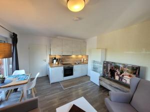 El apartamento en el alojamiento ofrece vistas al jardín y terraza, y consta de 1 dormitorio, sala de estar, TV de pantalla plana, baño con ducha y cocina equipada con nevera y lavavajillas. El apartamento Fewo am Yachthafen dispone de toallas y ropa de cama.