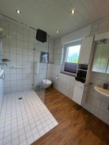 - Douche adaptée pour fauteuil roulant,
