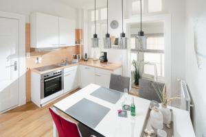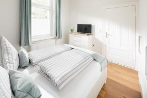 Das Fewo Grete umfasst ein Schlafzimmer, eine Küche mit Kühlschrank und Geschirrspüler sowie ein Bad mit Dusche, Haartrockner und Waschmaschine. In dieser Ferienwohnung werden Handtücher und Bettwäsche zur Verfügung gestellt.