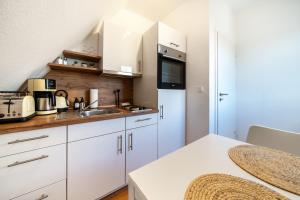El apartamento tiene 2 dormitorios, una cocina totalmente equipada con nevera y horno, y 1 baño con bañera y artículos de aseo gratuitos. El apartamento FeWo Herbert - Zentral - 2 Zimmer - Cozy dispone de toallas y ropa de cama.