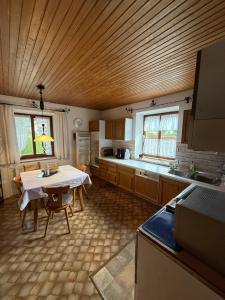 Dwupokojowy apartament FeWo Reiter - Gemütliche Fewo mit bayerischem Flair posiada łazienkę, kuchnię, jadalnię oraz komplet pościeli i ręczników. W obiekcie FeWo Reiter - Gemütliche Fewo mit bayerischem Flair znajduje się telewizor z płaskim ekranem i taras z widokiem na ogród.