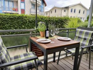 Apartmán Fewo Strandkörbchen se skládá z 1 ložnice, obývacího pokoje, plně vybavené kuchyně s lednicí a myčkou a 1 koupelnu. V koupelně ubytování Fewo Strandkörbchen nechybí sprcha ani fén.