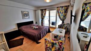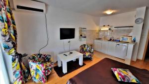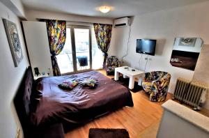 This air-conditioned studio is located 50 metres from the shore of the Lake Ohrid and 100 metres from the Old Town. It features a balcony with city and lake views. The living area comes with a flat-screen TV and the kitchenette is fitted with a microwave and kitchenware. The studio's private bathroom has a shower and a hairdryer. A snack bar can be found in the same building.