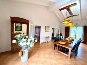 This villa boasts a private pool and a fireplace. Featuring a private entrance, this air-conditioned villa consists of 1 living room, 3 separate bedrooms and 2 bathrooms with a walk-in shower and a bidet. Guests will find a stovetop, a refrigerator, a dishwasher and kitchenware in the well-equipped kitchen. The villa also offers a barbecue. The spacious villa provides a flat-screen TV with cable channels, a washing machine, a tea and coffee maker, a seating area as well as garden views. The unit offers 3 beds.