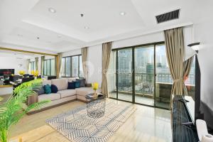 Cet appartement comporte 3 chambres, 2 salles de bains, du linge de lit, des serviettes, une télévision à écran plat, un coin repas, une cuisine entièrement équipée et un balcon offrant une vue sur la ville.