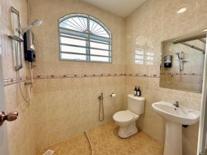 Tato vila s klimatizací má 4 ložnice, obývací prostor, kuchyňský kout s kompletním vybavením včetně lednice a 4 koupelny. V koupelně ubytování First Curve Ipoh Homestay nechybí sprcha ani fén.