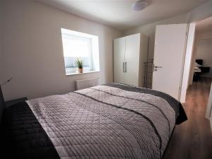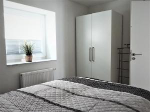 Dwupokojowy apartament FIS 002 - Strandperle oferuje łazienkę z prysznicem oraz kuchnię z lodówką i zmywarką. Wyposażenie obejmuje także telewizor.