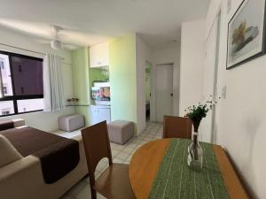 Klimatizovaný apartmán Flat Boa Viagem - Vista Mar nabízí TV s plochou obrazovkou, 1 ložnici a obývací pokoj.
