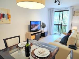 Apartmán ubytování poskytuje 1 ložnici, 1 koupelnu, ložní prádlo, ručníky, kabelovou TV s plochou obrazovkou, jídelní kout a plně vybavenou kuchyň. Z balkonu ubytování ubytování se otevírá výhled na hory. V koupelně ubytování Flat em Copacabana com Piscina, Garagem Inclusa e Portaria 24h a 4 min da Praia nechybí sprcha ani fén.