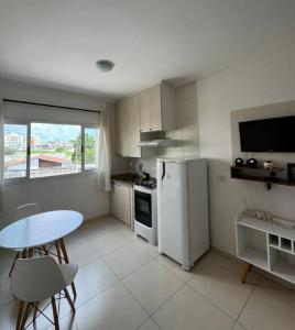Apartmán Flat em Taubaté zahrnuje 1 ložnici, TV s plochou obrazovkou a kuchyň.