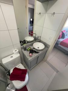 Klimatizovaný apartmán Flat Lindo e Aconchegante zahrnuje 1 ložnici, obývací pokoj, plně vybavenou kuchyň s lednicí a mikrovlnnou troubou a 1 koupelnu. Ubytování ubytování zahrnuje koupelnu s fénem.