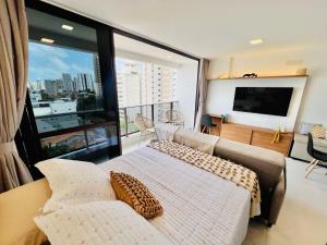 Flat Luxo com Coworking, Academia e Rooftop - WiFi 1Gb - Beira Mar 4 min, una struttura con terrazza e bar, si trova a a Fortaleza a 8,5 km da Centro Commerciale North Shopping, 10 km da Stadio Castelão e 900 metri da CEART - Handicraft Exposition. Con aria condizionata, l’alloggio dista 1,6 km da Praia de Meireles e offre il WiFi gratuito e il parcheggio privato disponibile sul posto.