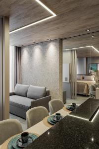 L'appartement Flat Luxuoso Beira Mar - New Time dispose d'une chambre, d'une télévision à écran plat, de la climatisation et d'un salon. Cet hébergement propose une cuisine.