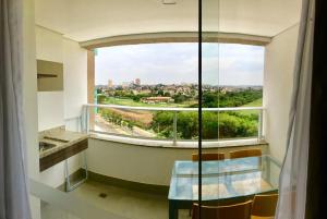 Apartmán Flat Olímpia Park Resort poskytuje 1 ložnici, 1 koupelnu, ložní prádlo, ručníky, kabelovou TV s plochou obrazovkou, jídelní kout a plně vybavenou kuchyň. Z terasy ubytování ubytování se otevírá výhled na město. Apartmán ubytování nabízí posezení a koupelnu.