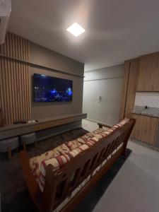 Апартаменты Flat praia Indaiá оснащены кондиционером и включают в себя 1 спальню, мини-кухню и 1 ванную комнату. В номерах объект размещения установлен телевизор с плоским экраном.