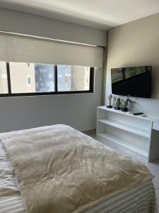 Flat Recife ilha do leite - Luxury piscina térmica consists of 1 bedroom, a fully equipped kitchen, and 1 bathroom. A flat-screen TV is provided.