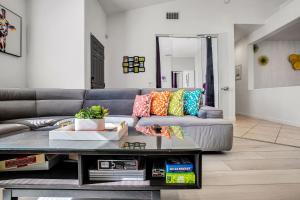 This holiday home features a hot tub and a fireplace. Boasting a private entrance, this spacious holiday home also features 4 bedrooms, a seating area and 2 bathrooms with a bath and a shower. Guests will find a stovetop, a refrigerator, a dishwasher and kitchenware in the well-equipped kitchen. The holiday home also comes with a barbecue. This air-conditioned holiday home comprises a dining area, a flat-screen TV with cable channels a washing machine and a patio. The unit has 4 beds.