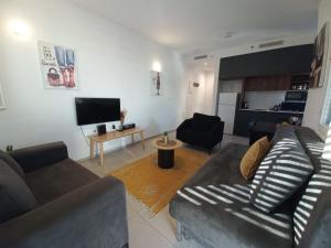 The apartment's kitchen is available for cooking and storing food. Boasting a balcony, this apartment also features air conditioning, a seating area and a flat-screen TV. V této ubytovací jednotce se nachází 2 postele.
