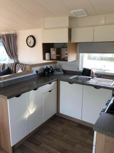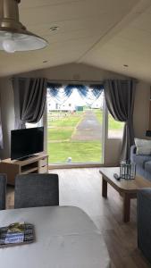 Guests will have a special experience as this mobile home offers a fireplace. Featuring a private entrance, this mobile home is comprised of 1 living room, 2 separate bedrooms and 2 bathrooms with a shower and a hairdryer. The well-equipped kitchen features a stovetop, a refrigerator, kitchenware and an oven. The mobile home has carpeted floors, a seating area with a flat-screen TV, a dining area, a wardrobe as well as mountain views. The unit offers 5 beds.