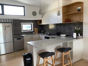 This apartment features a fireplace. Boasting a private entrance, this spacious apartment also features 1 bedroom, a seating area and 2 bathrooms with a walk-in shower and a hairdryer. Guests will find a stovetop, a refrigerator, a dishwasher and kitchenware in the fully equipped kitchen. The apartment also comes with a barbecue. The air-conditioned apartment features a flat-screen TV with streaming services, a washing machine, a tea and coffee maker, a dining area as well as lake views. V této ubytovací jednotce se nachází 1 postel.