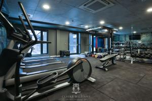 Apartmán má TV. Apartmán má také kuchyň s dobrým vybavením včetně lednice, trouby a mikrovlnné trouby a koupelnu.