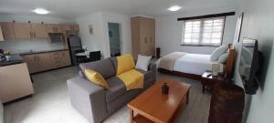 The spacious studio offers a washing machine, a wardrobe, as well as a private bathroom featuring a bath and a shower. The well-equipped kitchen features a stovetop, a refrigerator, an oven and a microwave. The studio provides a flat-screen TV, an electric kettle, a sofa, a tiled floor as well as garden views. The unit provides 1 bed.