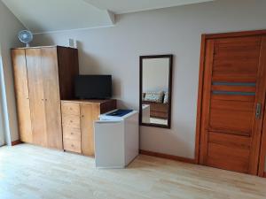 The double room offers a wardrobe, parquet floors, as well as a private bathroom featuring a shower and a hairdryer. This double room features heating, a flat-screen TV and garden views. V této ubytovací jednotce je k dispozici 1 postel.
