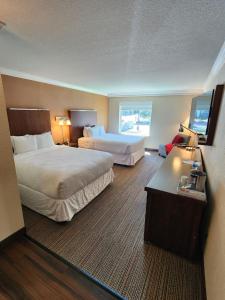 This double room features a satellite TV, seating area and microwave. Due to Covid restrictions, the breakfast is a grab and go option and is complimentary to all guests. No fee is associated.