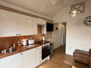 Prázdninový dům má 1 ložnici, 1 koupelnu, ložní prádlo, ručníky, TV s plochou obrazovkou, kuchyň s kompletním vybavením a balkon s výhledem do zahrady. V koupelně ubytování Fox Lodge with Hot Tub naleznete sprchu, vířivku a fén.