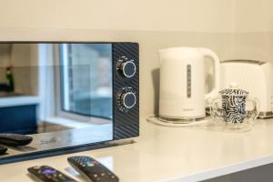 Apartmán Free parking, 2 beds,close to train station zahrnuje 2 ložnice, plně vybavenou kuchyň s lednicí a troubou a 1 koupelnu se sprchou. V apartmánu ubytování najdete TV s plochou obrazovkou a koupelnu s fénem.