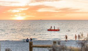 The apartment with a balcony and sea views has 1 bedroom, a living room, a flat-screen TV, an equipped kitchen with a dishwasher and an oven, and 1 bathroom with a shower. Towels and bed linen are offered at Fremantle Beach Pad - ocean front, cafes, bars. Fremantle Beach Pad - ocean front, cafes, bars includes an outdoor dining area.