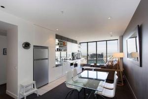 El apartamento con aire acondicionado en Freshwater Pearl on Southbank, Melbourne consta de 2 dormitorios independientes, sala de estar, 1 baño y cocina equipada con nevera y lavavajillas. El apartamento el alojamiento dispone de toallas y ropa de cama.