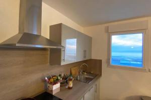 Diese Ferienwohnung mit einem Balkon und Meerblick bietet 1 Schlafzimmer, ein Wohnzimmer, einen Flachbild-TV, eine gut ausgestattete Küche mit einem Kühlschrank und einem Geschirrspüler sowie 1 Badezimmer mit einer Dusche. In dieser Ferienwohnung werden Handtücher und Bettwäsche angeboten.