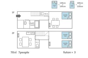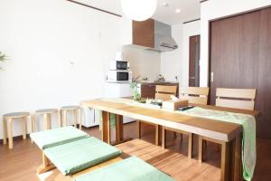 The air-conditioned holiday home features 2 bedrooms and 1 bathroom with a bath and a shower. In the fully equipped kitchen, guests will find a stovetop, a refrigerator, kitchenware and a microwave. The holiday home provides a washing machine, tatami, a dining area, an electric kettle, as well as a flat-screen TV. The unit offers 3 beds and 3 futons.