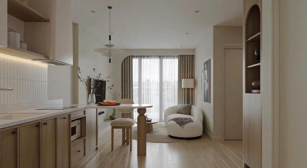 - Small kitchen area,