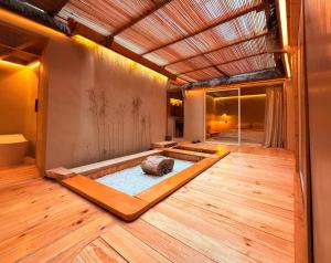 Pokoje: 1This chalet features a hot tub. This chalet features 1 living room, 2 separate bedrooms and 1 bathroom with a bath and free toiletries. The chalet's kitchenette, which has a refrigerator and kitchenware, is available for cooking and storing food. The air-conditioned chalet features a flat-screen TV with streaming services, soundproof walls, a minibar, a tea and coffee maker as well as garden views. V této ubytovací jednotce se nachází 3 postele.