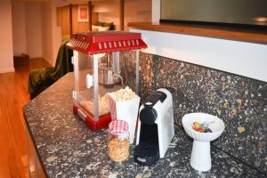 Questo appartamento comprende 1 camera da letto, un angolo cottura con piano cottura e tostapane, una lavatrice e 1 bagno con set di cortesia e asciugacapelli. Presso Funky Den is Bold and Vibrant with Deep tub and Parking la dotazione include lenzuola e asciugamani.