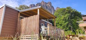 El camping cuenta con barbacoa y salón compartido.