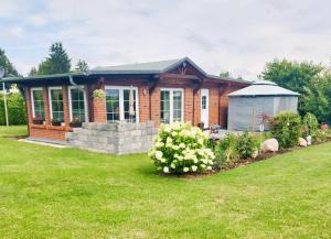 Dieses Ferienhaus mit einer Terrasse und Gartenblick hat 1 Schlafzimmer, ein Wohnzimmer, einen Flachbild-TV, eine gut ausgestattete Küchenzeile mit einem Kühlschrank und einem Geschirrspüler sowie 1 Badezimmer mit einer Dusche. Für zusätzlichen Komfort kann die Unterkunft Handtücher und Bettwäsche gegen Aufpreis bieten.
