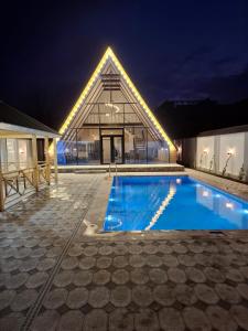 Obiekt Gabala A Frame shakh frame qebele położony jest w miejscowości Nohurqışlaq i oferuje odkryty basen, taras oraz bezpłatne Wi-Fi. Obiekt Gabala A Frame shakh frame qebele oferuje widok na ogród. Willa Gabala A Frame shakh frame qebele oferuje prywatny basen, ogród oraz bezpłatne miejsce postojowe.