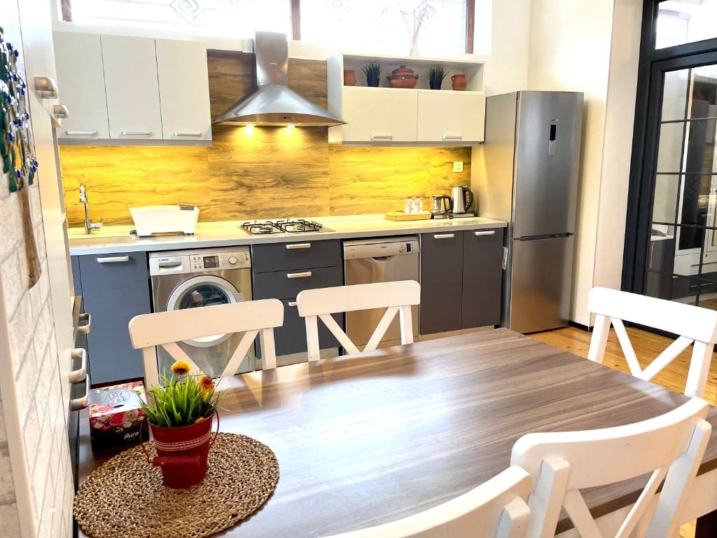 La casa con aire acondicionado en Gabala Sweet Lounge consta de 2 dormitorios, sala de estar, cocina equipada con nevera y hervidor, y baño con ducha y secador de pelo. La casa o chalet el alojamiento proporciona toallas y ropa de cama.