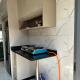 - Small kitchen area,