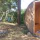 Hammocks and a swing are available on the property. The terrace includes a sink and fridge for convenience. Running water, a stove top, and fridge can be used in the cabin area. The beach is about a kilometer walk away and remains very clean and empty. Silence allows clear views of many stars at night.
