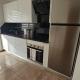El apartamento de un dormitorio en Gamboa Apartment - Portimão cuenta con cocina completa y sala de estar con TV de pantalla plana.