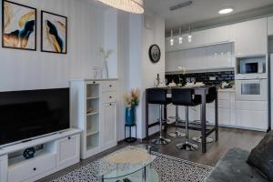 This apartment features 1 living room, 1 separate bedroom and 1 bathroom with a shower and free toiletries. The well-fitted kitchenette has a stovetop, a refrigerator, a dishwasher and kitchenware. Boasting a patio, this apartment also features a washing machine, a tea and coffee maker and a flat-screen TV with cable channels. V této ubytovací jednotce se nachází 2 postele.