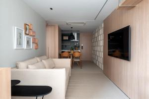 Apartament Garbo San Gabriel - Apartamento de alto padrão para curta e longa temporada wyposażono w telewizor z płaskim ekranem. Apartament w Garbo San Gabriel - Apartamento de alto padrão para curta e longa temporada wyposażony jest w kuchnię z lodówką, piekarnikiem i mikrofalówką oraz suszarkę do włosów.