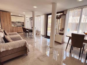 This spacious apartment features 1 living room, 2 separate bedrooms and 2 bathrooms with a shower and free toiletries. Guests will find a refrigerator, kitchenware, an oven and a microwave in the well-equipped kitchen. The apartment also comes with a barbecue. The air-conditioned apartment features a flat-screen TV, a washing machine, a private entrance, a tea and coffee maker as well as garden views. V této ubytovací jednotce se nachází 2 postele.